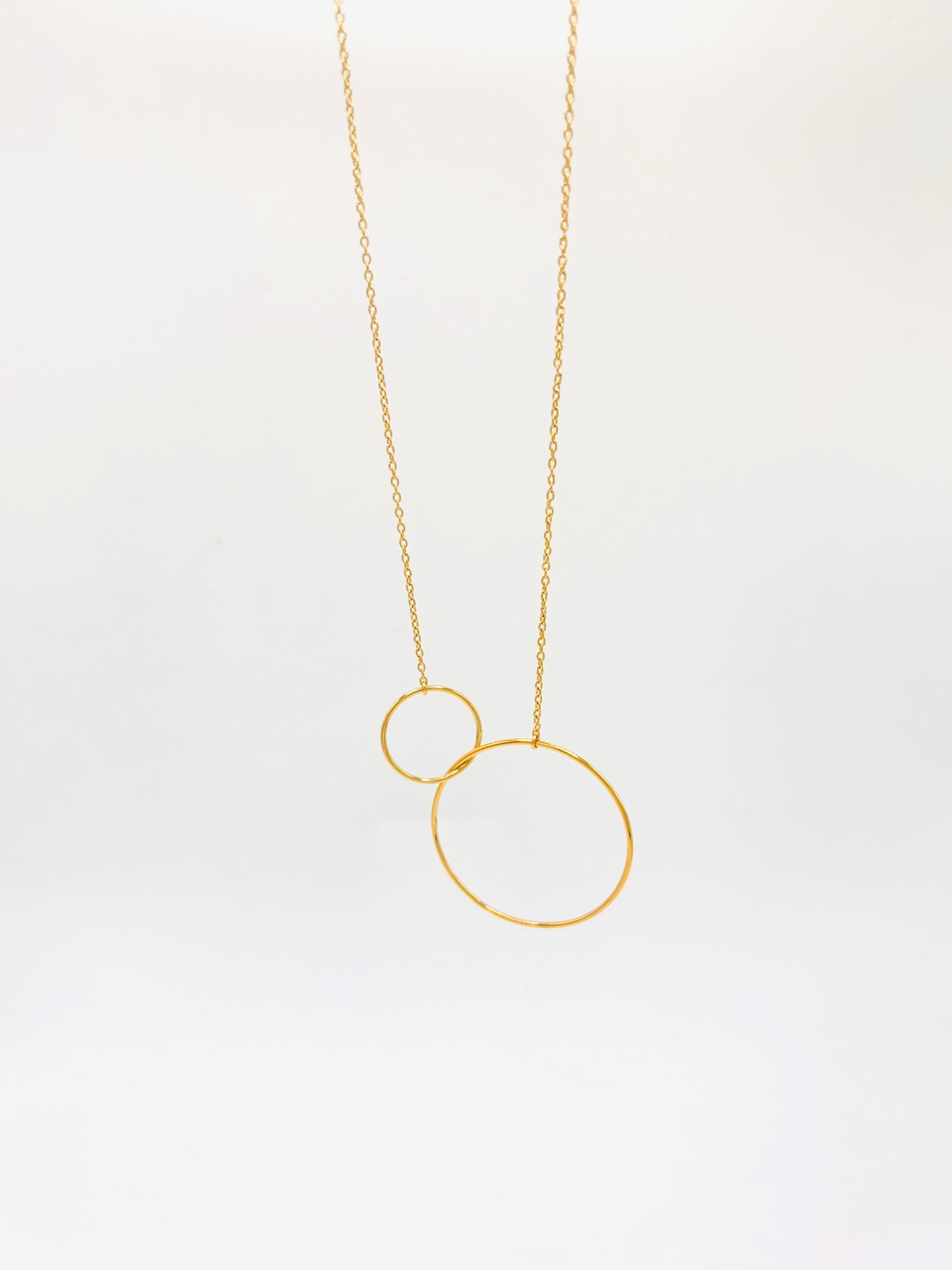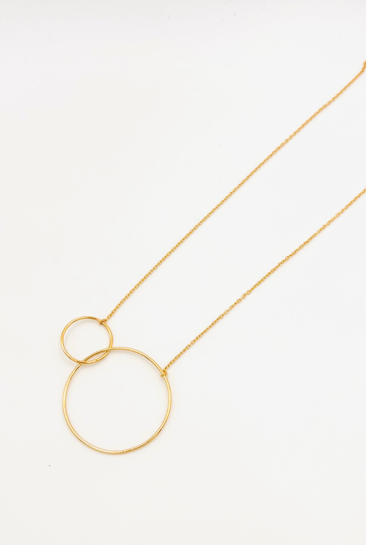 Collier Aphrodite en laiton plaqué or 3 microns composé de 2 cercles asymétriques entrelacés
