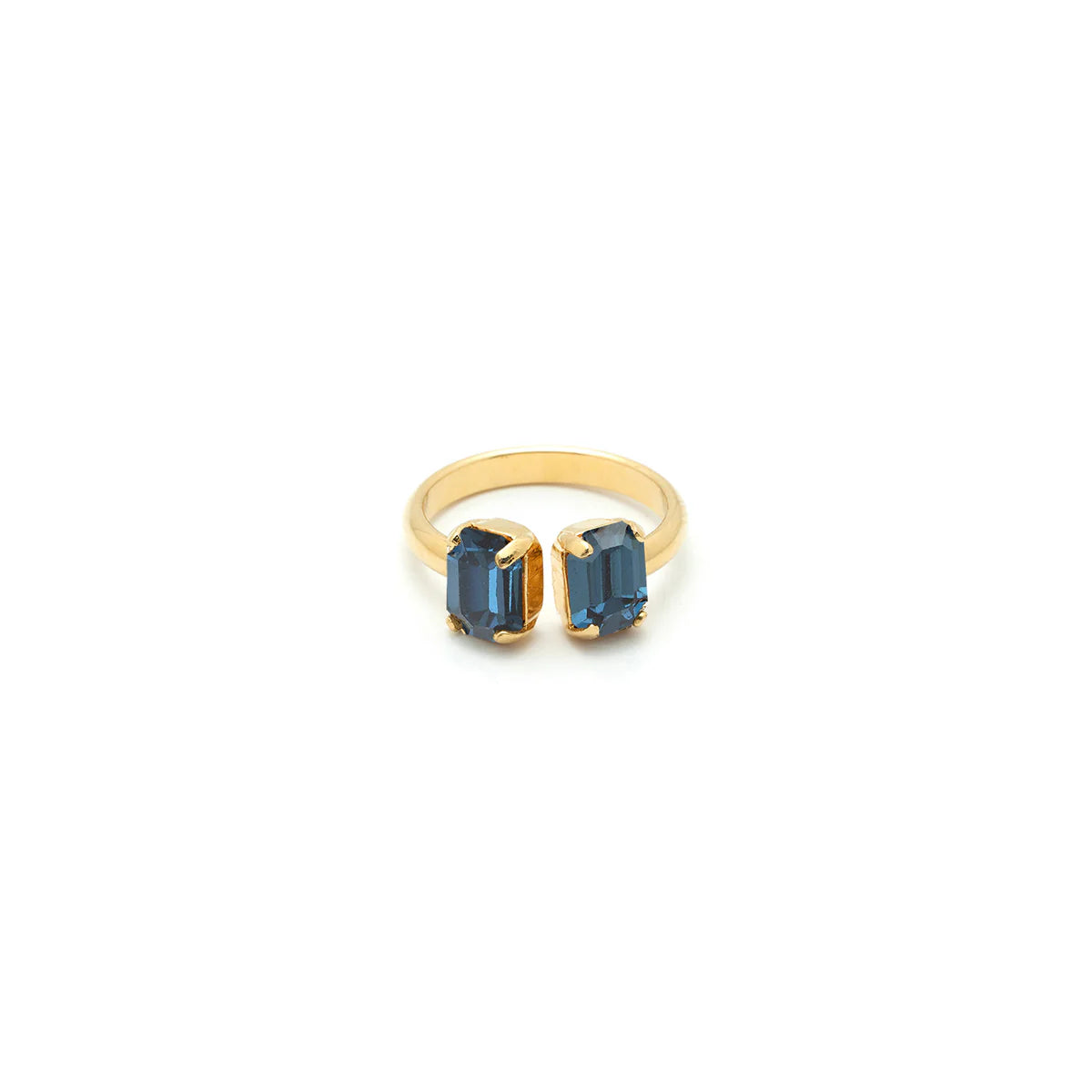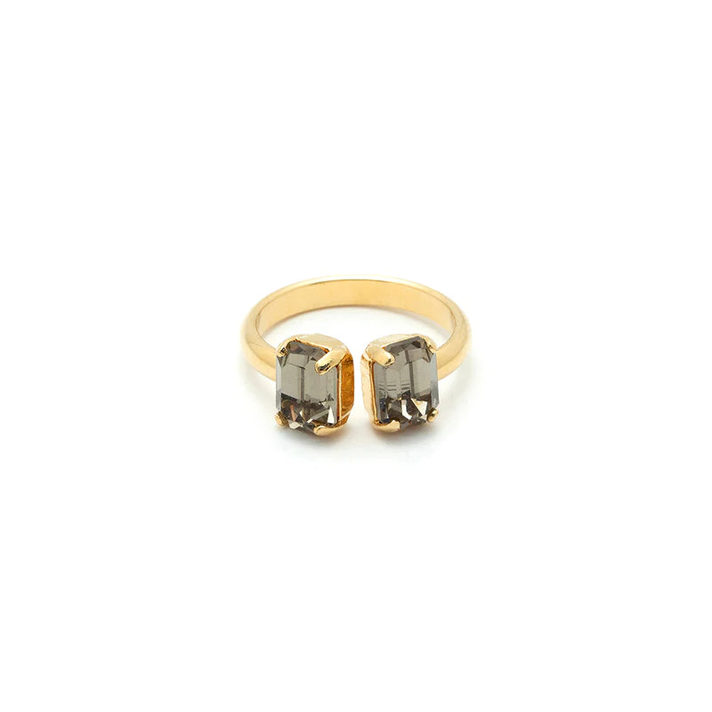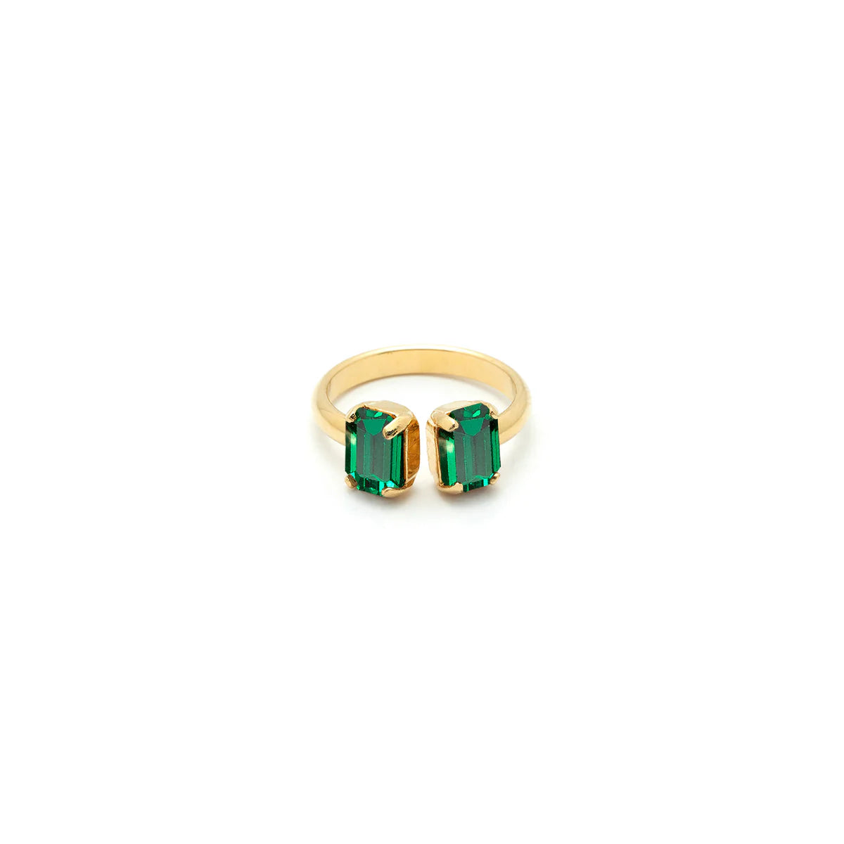 Bague Ouverte Lily en laiton doré à l'or fin 24 carats, plaquage 1 micron composé de cristaux Swarovski vert, gris ou violet