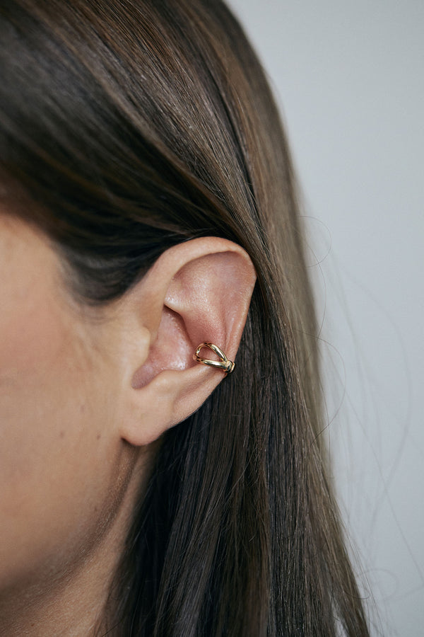 Boucle Earcuff Tina composé d'un nœud central en laiton plaqué or 3 microns.