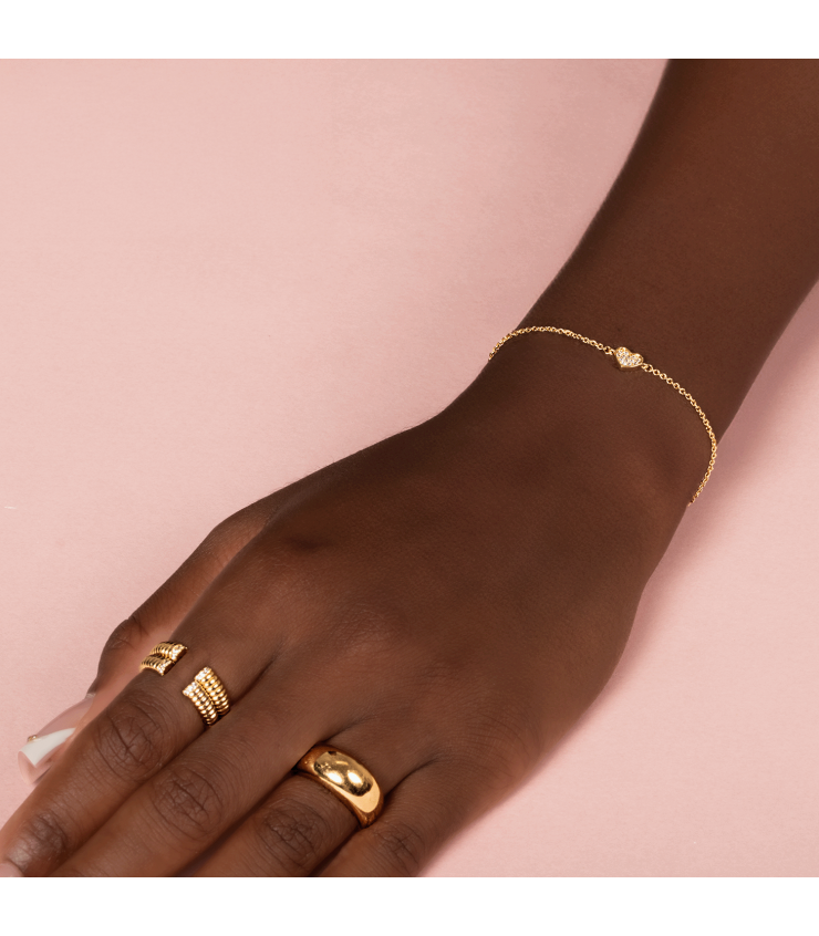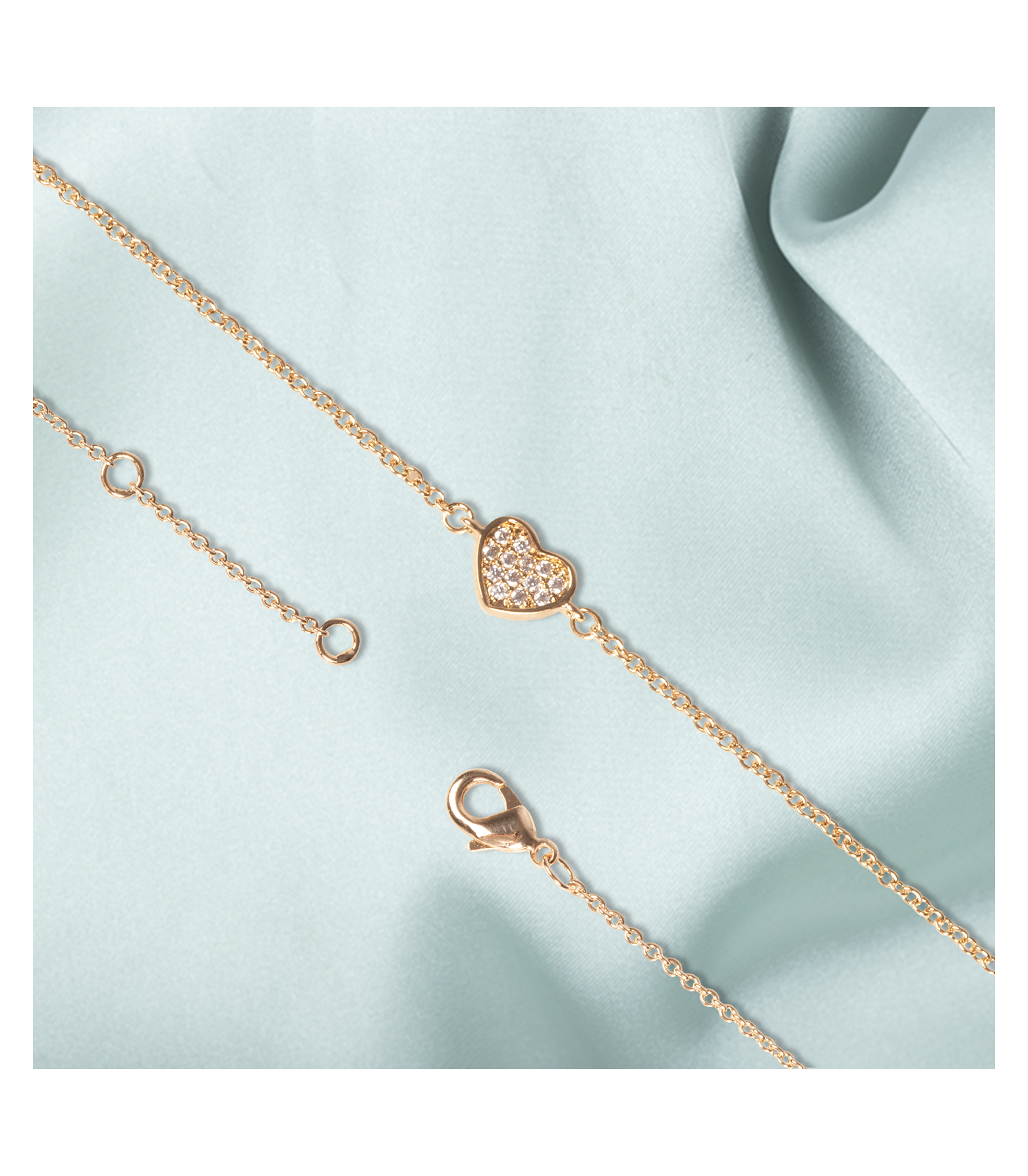 Bracelet en plaqué or 3 microns composé d'une chaine ornée d'un cœur fin orné de zircons blancs