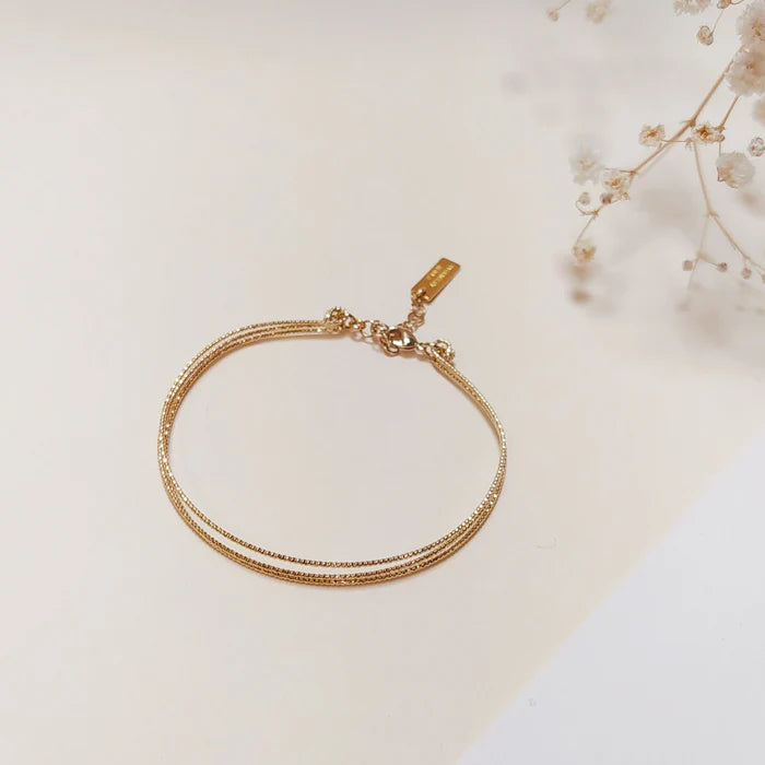 Bracelet Jonc Léna 2 en laiton doré à l'or fin 24 carats composé de 3 joncs fins et brillants