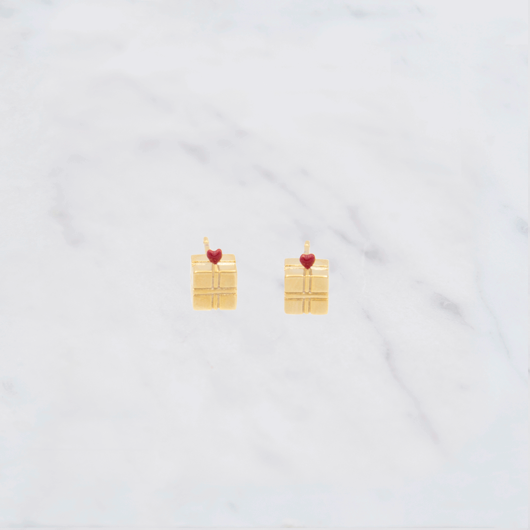 Boucles Puces Cadeaux en laiton doré à l'or fin 14 carats légèrement émaillé en rouge ou blanc