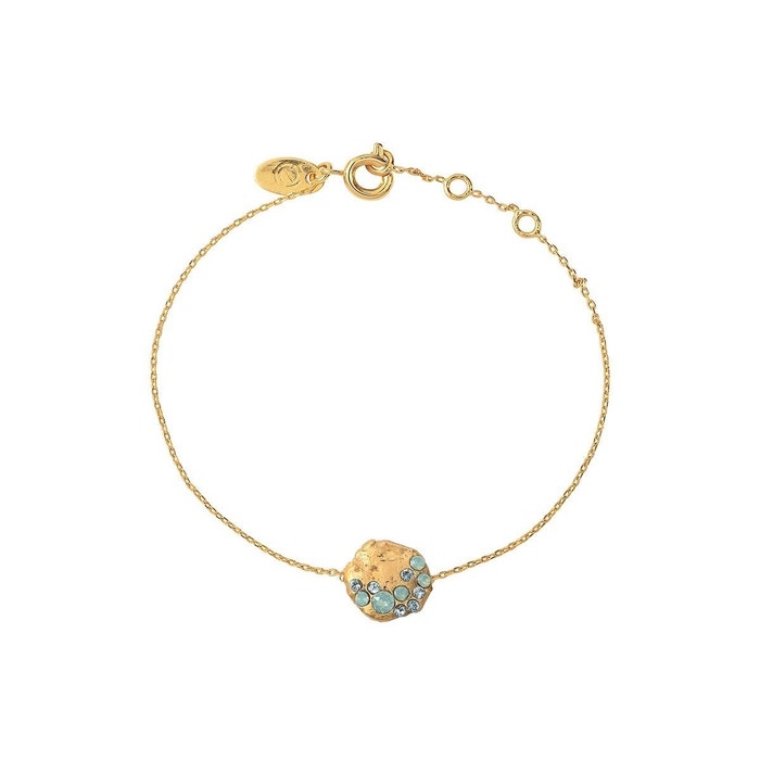 Bracelet Seven en laiton doré à l'or fin 24 carats ornées de cristaux bleus ou blancs