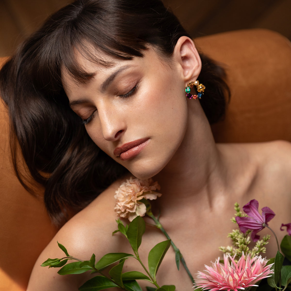 Boucles d'oreilles Cosmos en laiton doré à l'or fin 24 carats composé de cristaux Swarovski