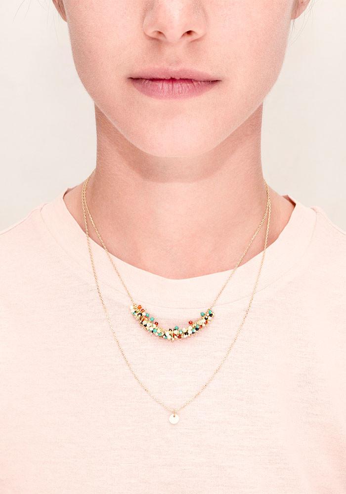 Collier Halo en laiton doré à l'or 24 carats, orné de perles de rivière, de Howlites et d'agates.